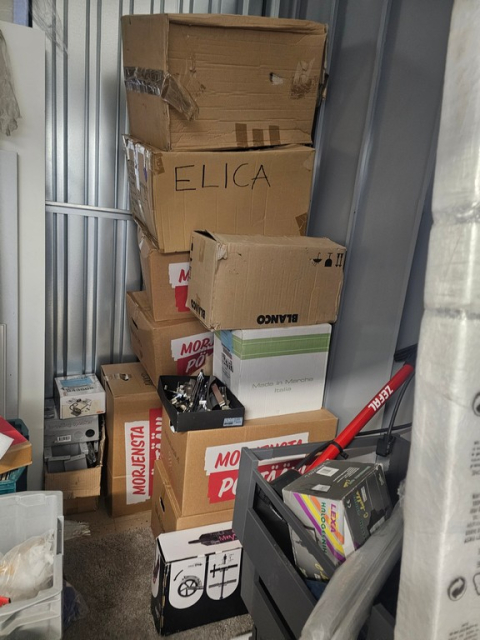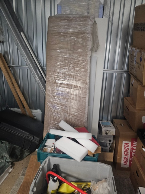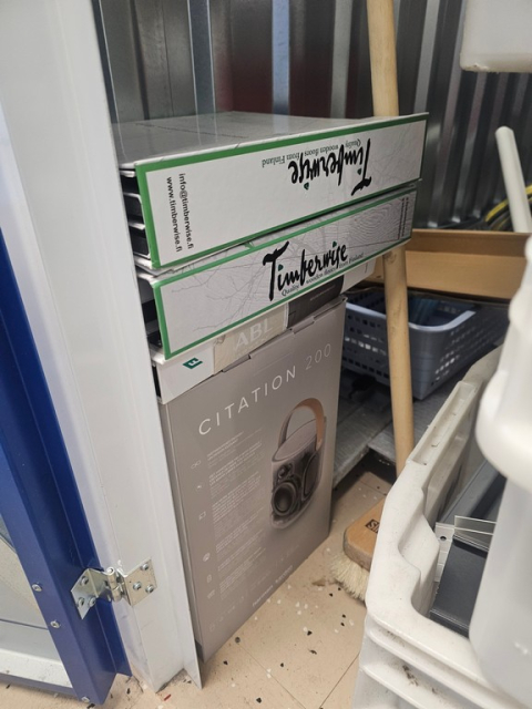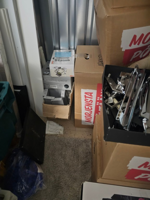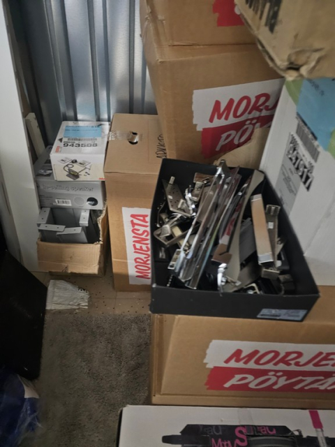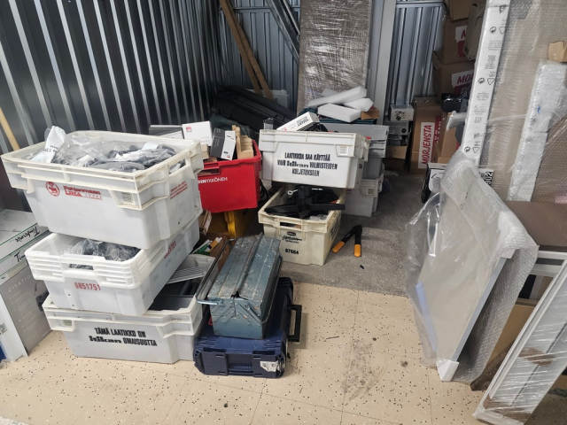 Myydään huutokaupalla kuvassa näkyvän varaston sisältö, vuokranantajan / haltijan lukuun.