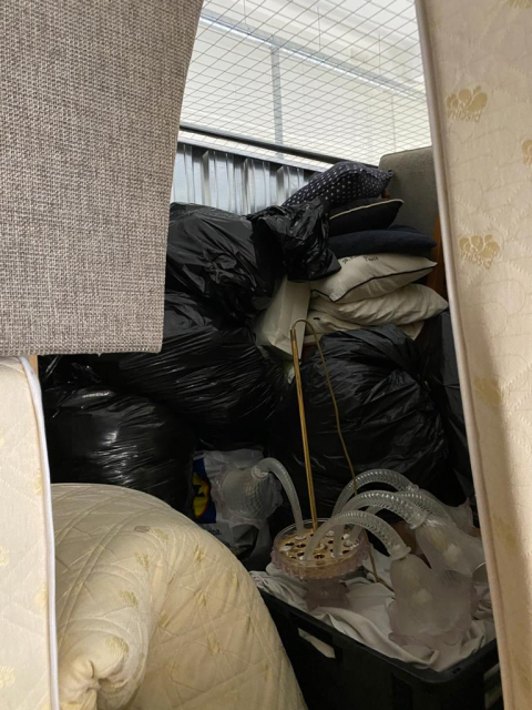 Myydään huutokaupalla kuvassa näkyvän varaston sisältö, vuokranantajan / haltijan lukuun.