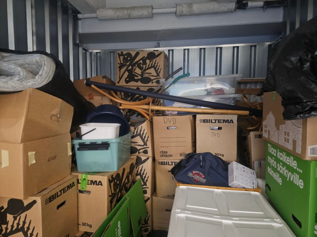Myydään huutokaupalla kuvassa näkyvän varaston sisältö, vuokranantajan / haltijan lukuun.