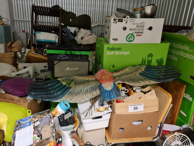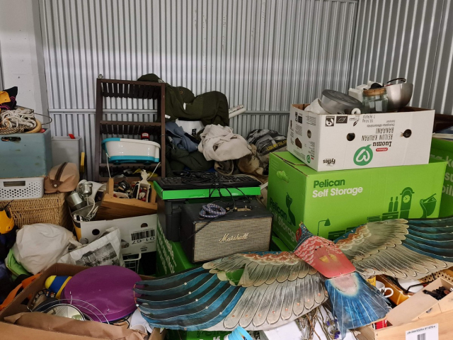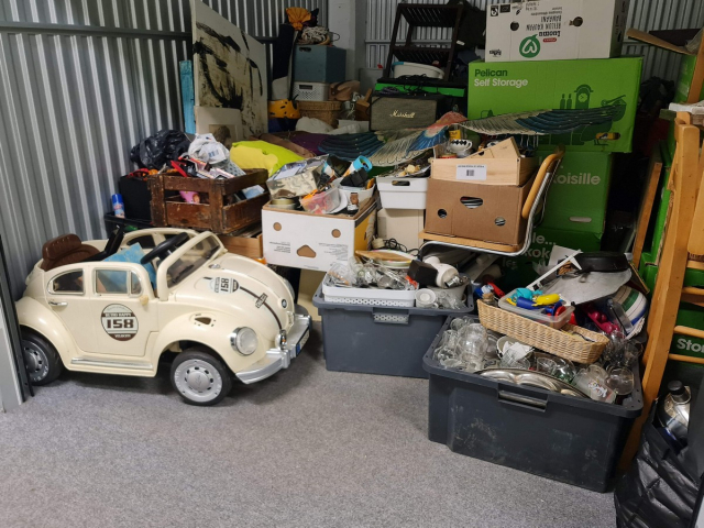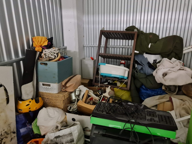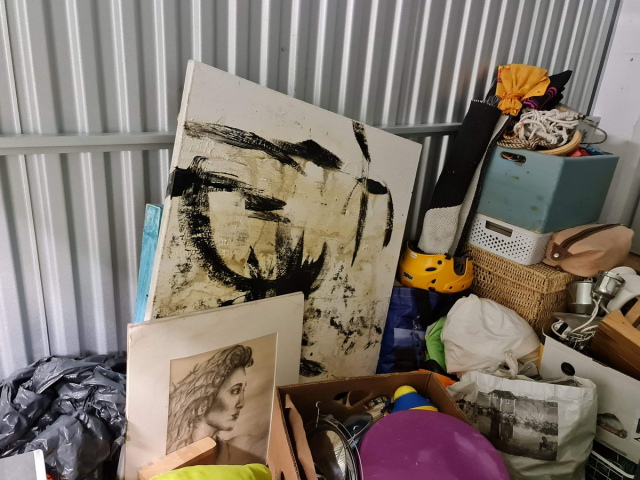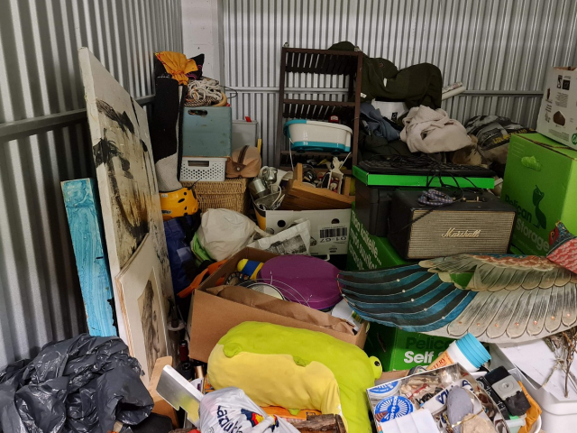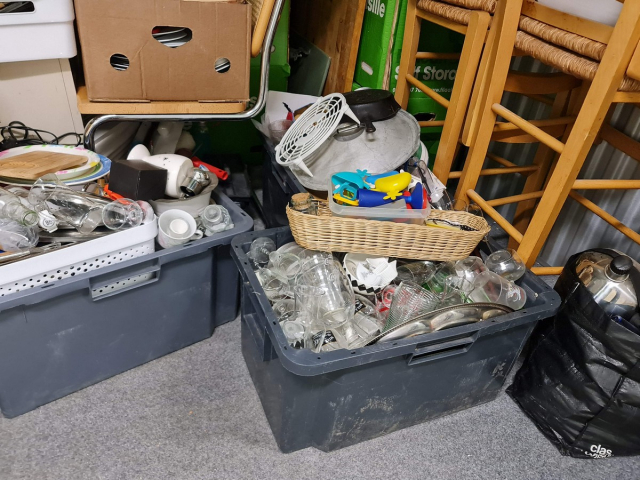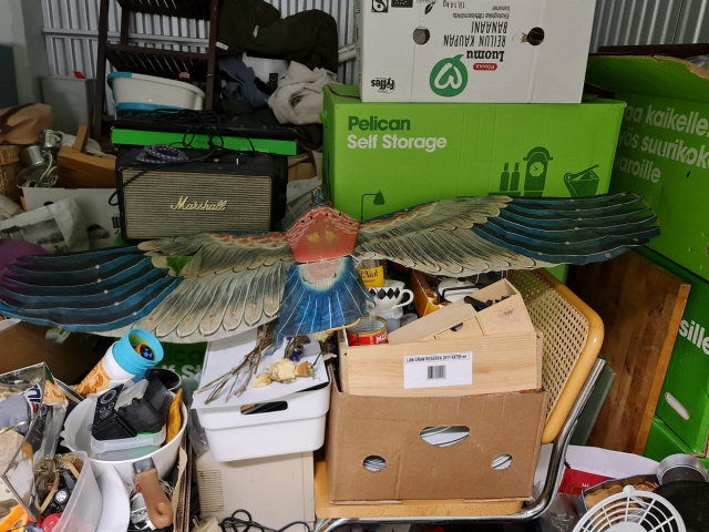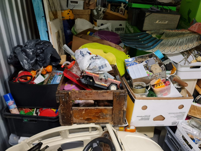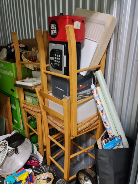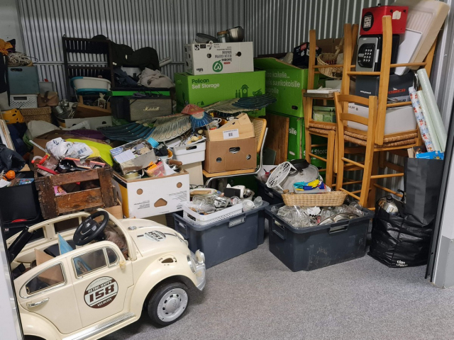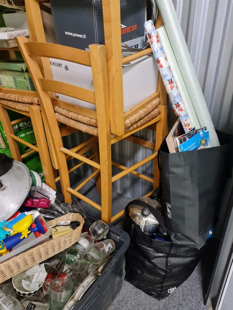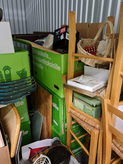 Myydään huutokaupalla kuvassa näkyvän varaston sisältö, vuokranantajan / haltijan lukuun.