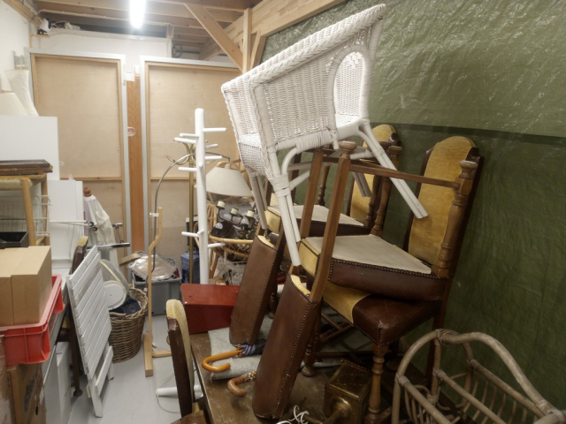 Myydään huutokaupalla kuvassa näkyvän varaston sisältö, vuokranantajan / haltijan lukuun.