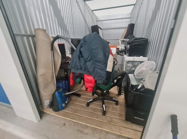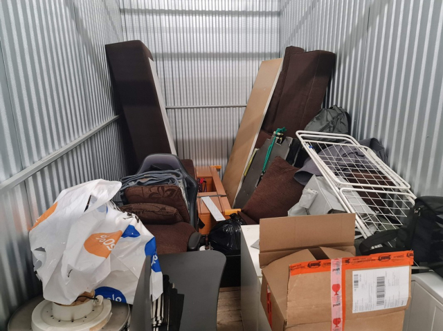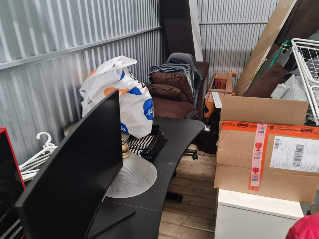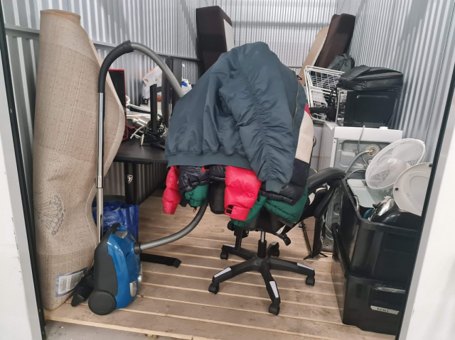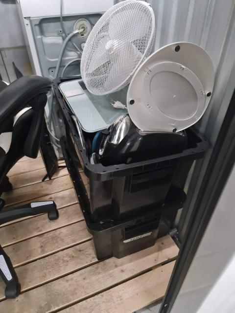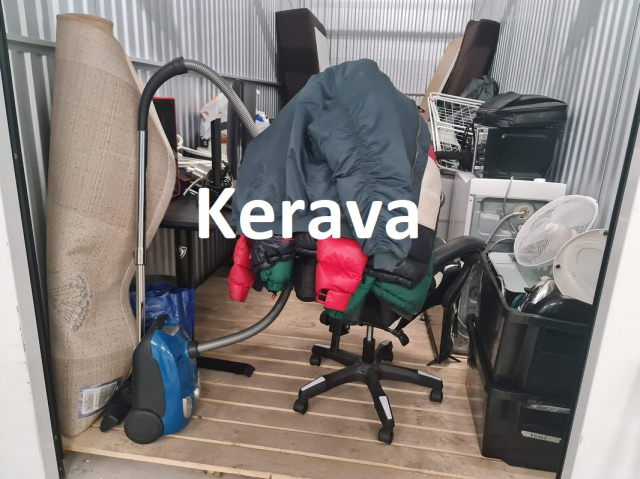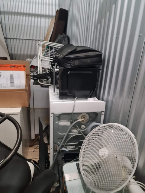 Myydään huutokaupalla kuvassa näkyvän varaston sisältö, vuokranantajan / haltijan lukuun.