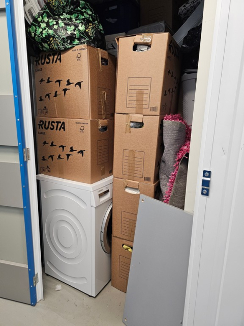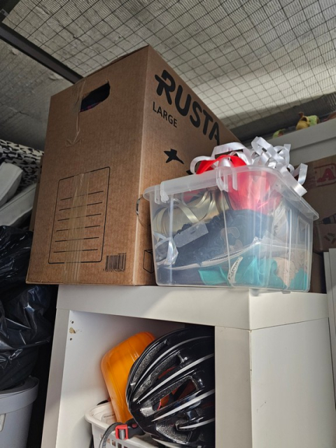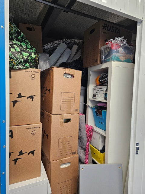Myydään huutokaupalla kuvassa näkyvän varaston sisältö, vuokranantajan / haltijan lukuun.