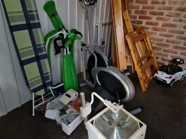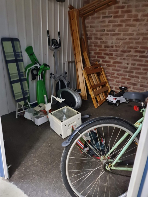 Myydään huutokaupalla kuvassa näkyvän varaston sisältö, vuokranantajan / haltijan lukuun.