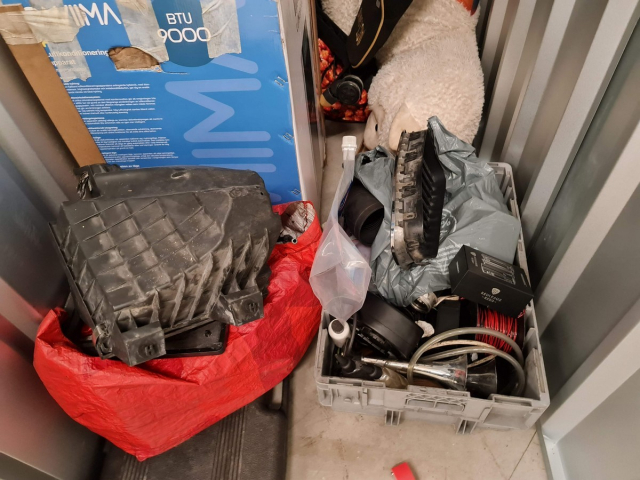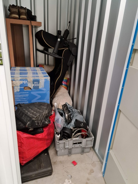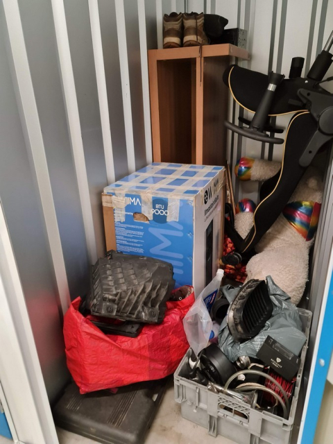 Myydään huutokaupalla kuvassa näkyvän varaston sisältö, vuokranantajan / haltijan lukuun.
