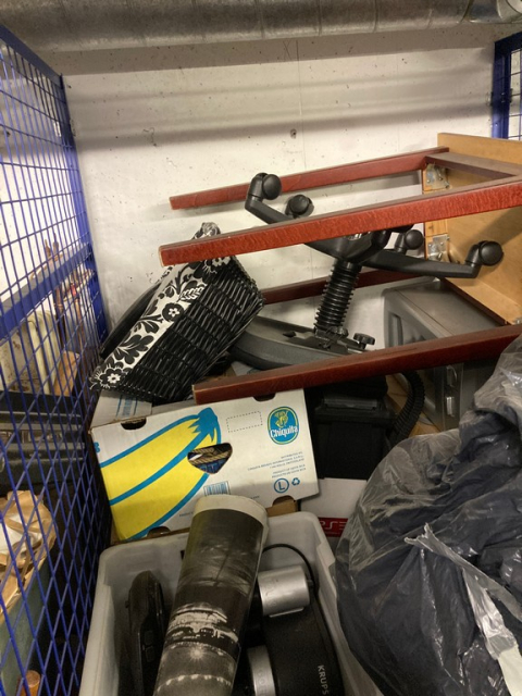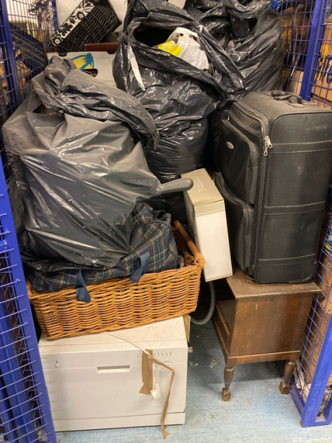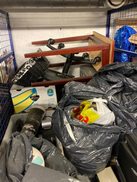 Myydään huutokaupalla kuvassa näkyvän varaston sisältö, vuokranantajan / haltijan lukuun.