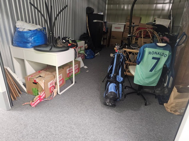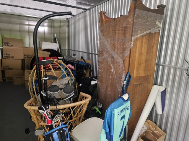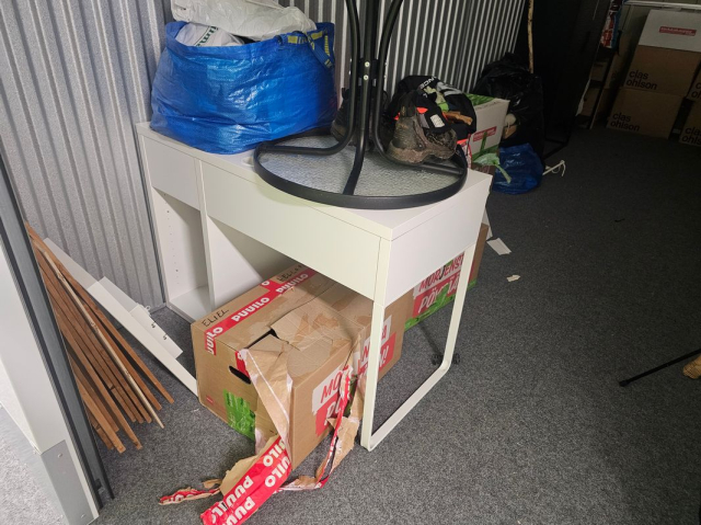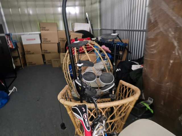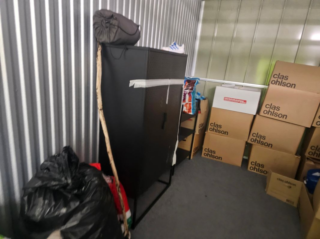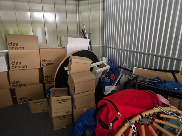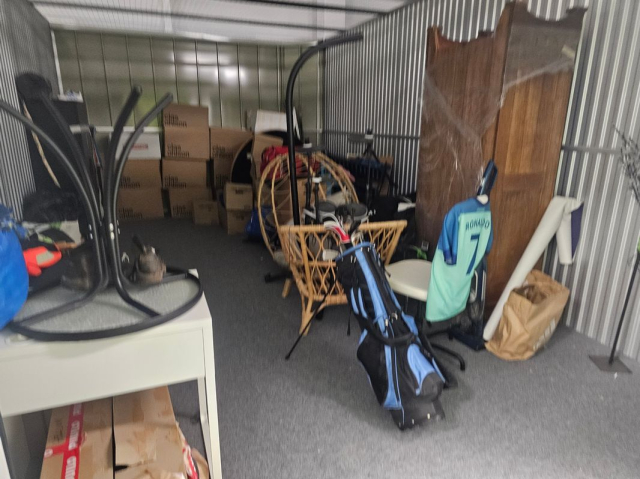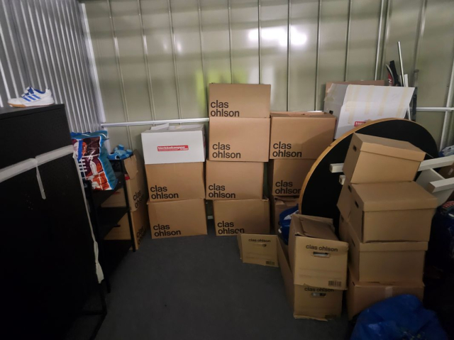 Myydään huutokaupalla kuvassa näkyvän varaston sisältö, vuokranantajan / haltijan lukuun.