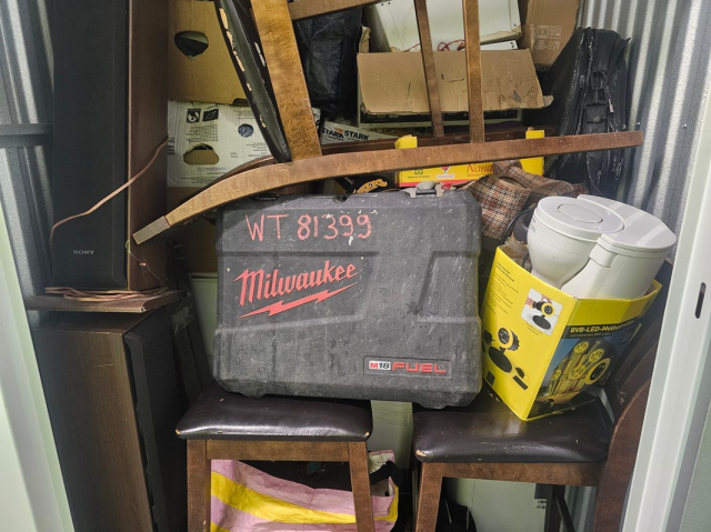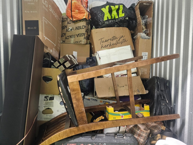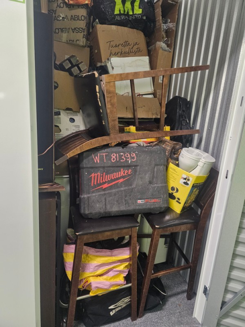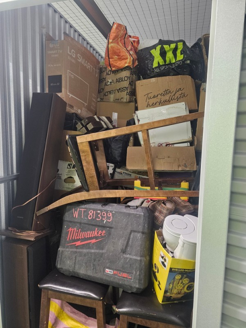 Myydään huutokaupalla kuvassa näkyvän varaston sisältö, vuokranantajan / haltijan lukuun.