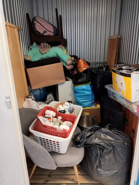 Myydään huutokaupalla kuvassa näkyvän varaston sisältö, vuokranantajan / haltijan lukuun.