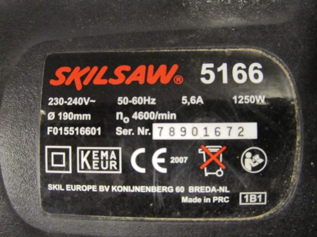 Sirkkelisaha, Skilsaw 5166, 1250 W, 66 mm, käytetty, toimiva, 1 kpl