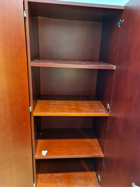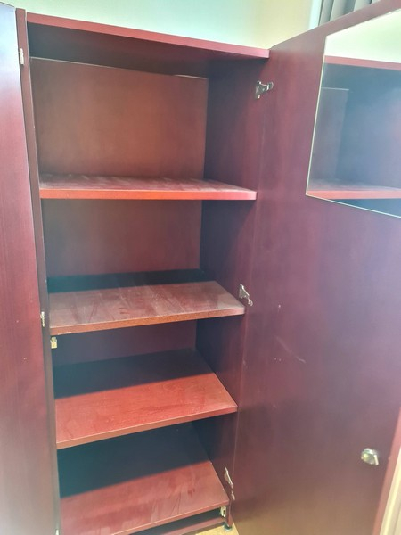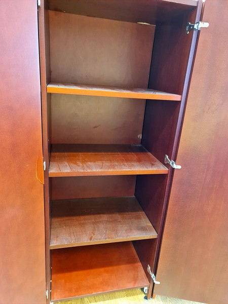 T27-T36 Johtajan huoneen kalusto, mahonkiset kaapit, työpöytä
