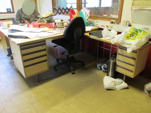 Kuvan mukaiset toimisto kalusteet, pöydät tuolit, hyllyt, kaapistot, ei sisällä koneita, laitteita, mappeja, ym materioaalia.