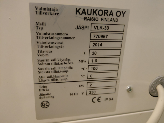 Vesivaraaja Jäspi VLK-30, 30 l, 2 kW (49)