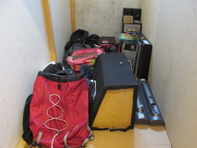 Myydään huutokaupalla kuvassa näkyvän n. 2 m2 vuokravaraston tavarat, vuokranantajan/haltijan lukuun.