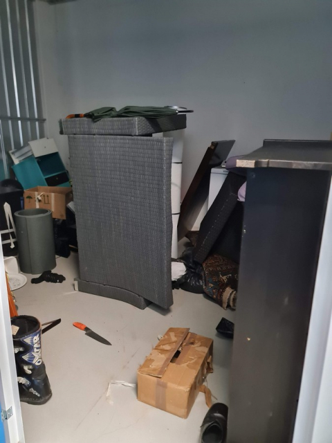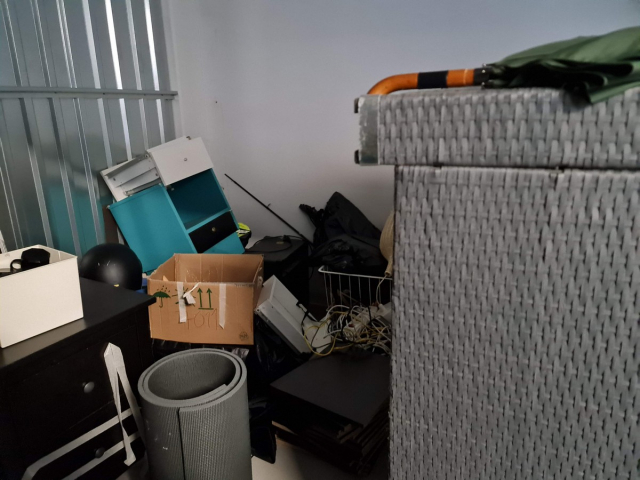 Myydään huutokaupalla kuvassa näkyvän varaston sisältö, vuokranantajan / haltijan lukuun.