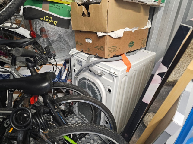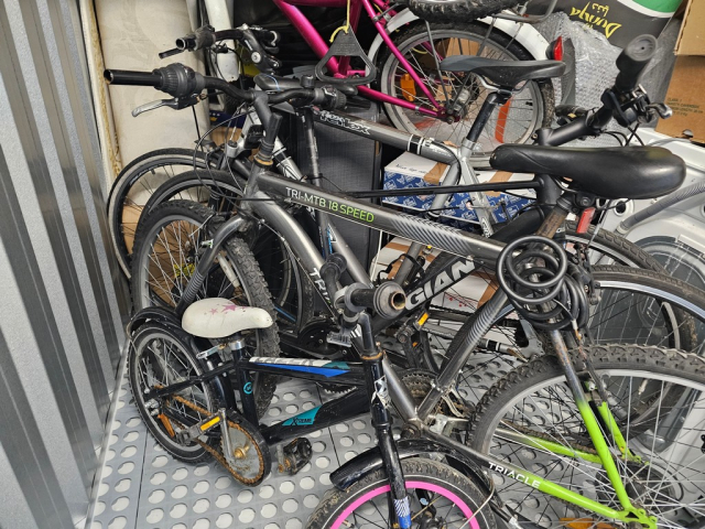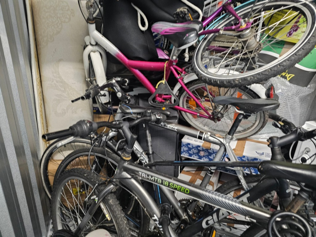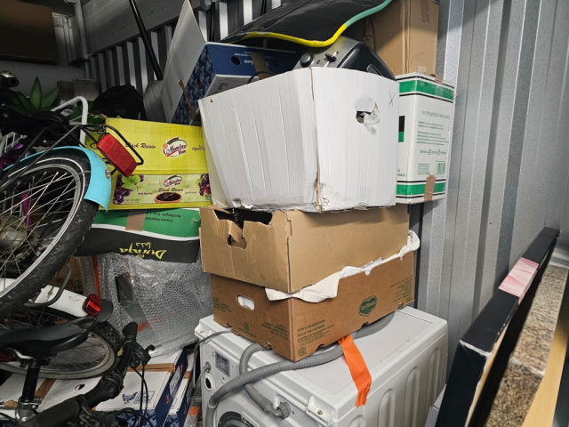 Myydään huutokaupalla kuvassa näkyvän varaston sisältö, vuokranantajan / haltijan lukuun.