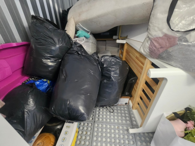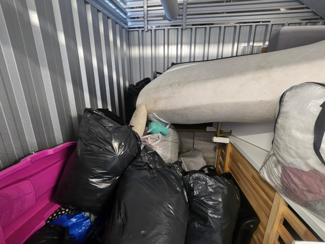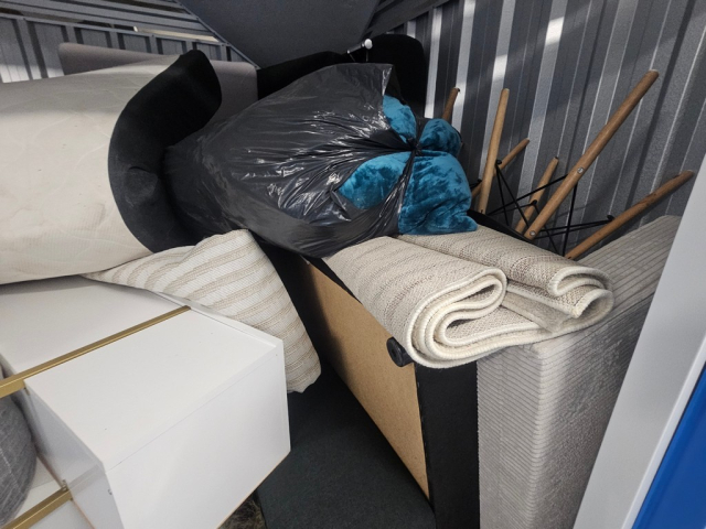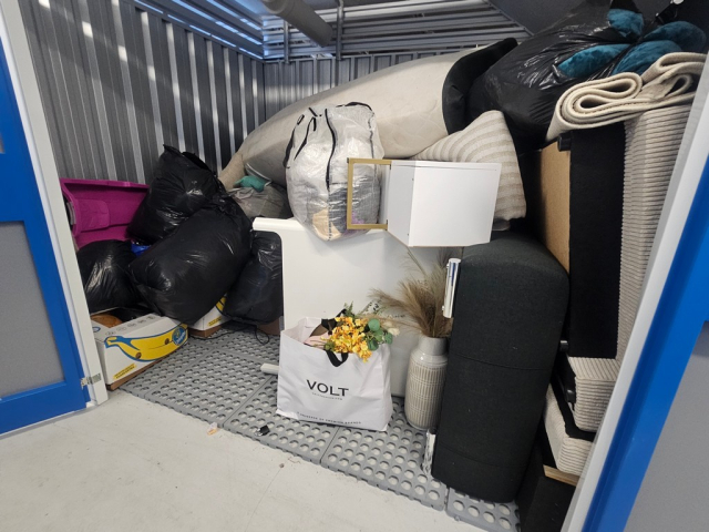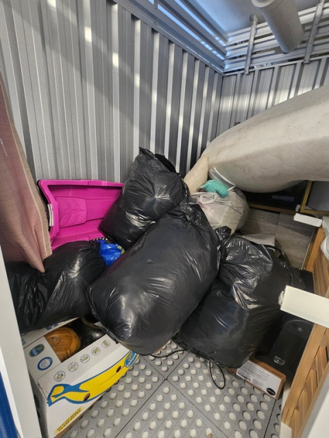 Myydään huutokaupalla kuvassa näkyvän varaston sisältö, vuokranantajan / haltijan lukuun.
