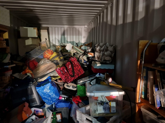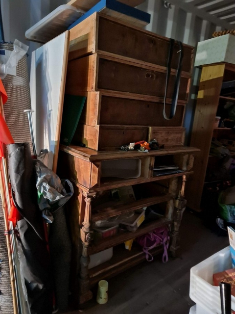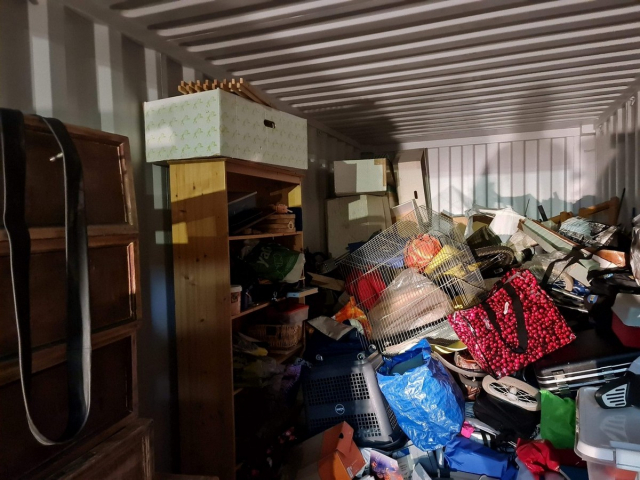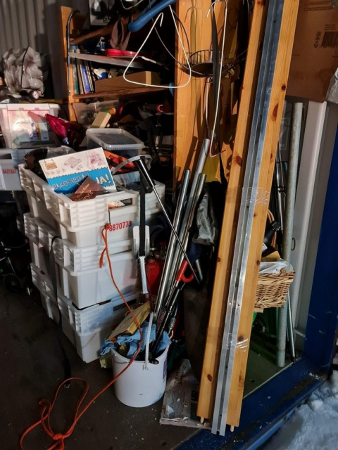 Myydään huutokaupalla kuvassa näkyvän varaston sisältö, vuokranantajan / haltijan lukuun.