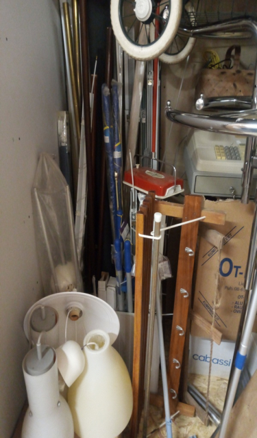 Myydään huutokaupalla kuvassa näkyvän varaston sisältö, vuokranantajan / haltijan lukuun.