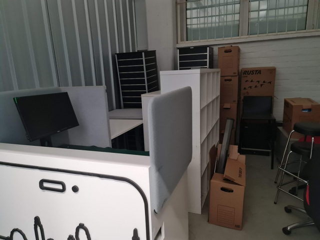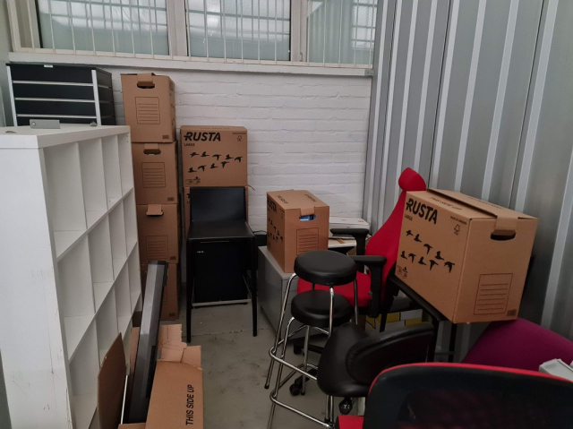 Myydään huutokaupalla kuvassa näkyvän varaston sisältö, vuokranantajan / haltijan lukuun.