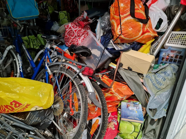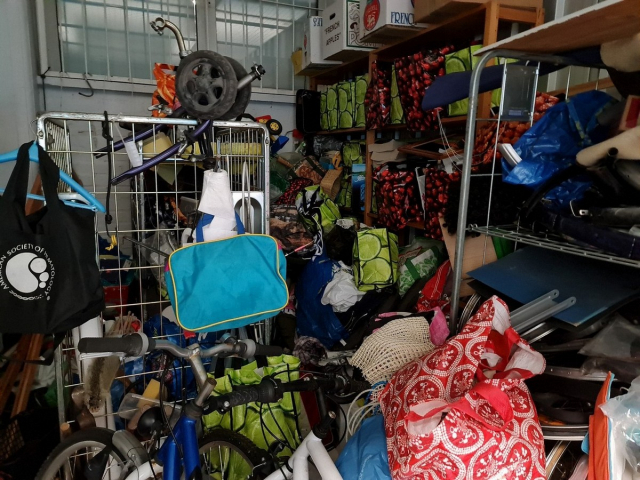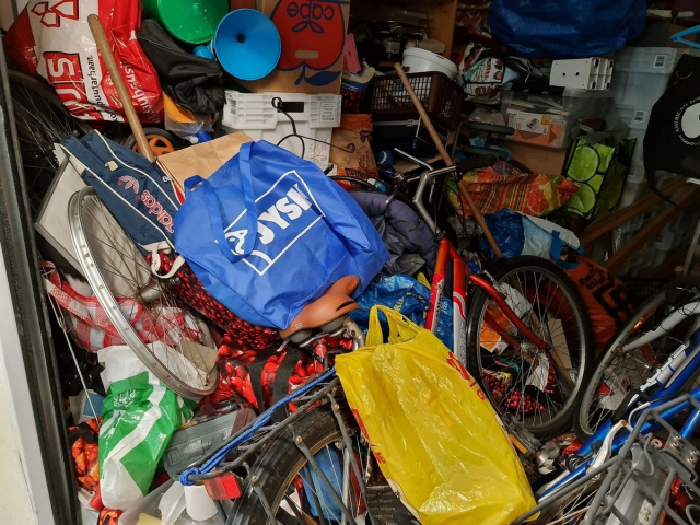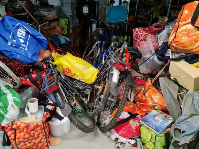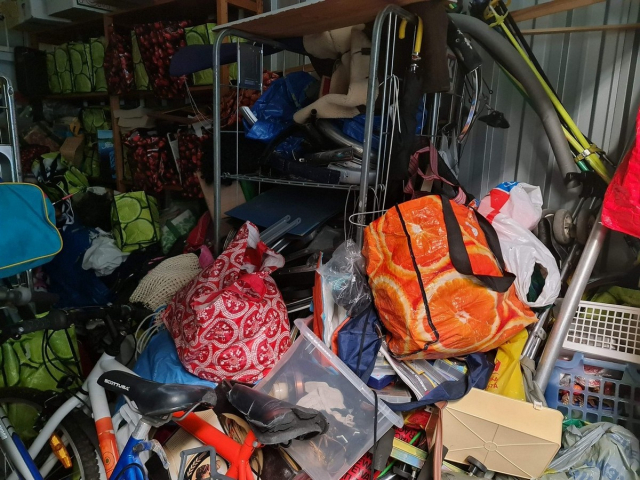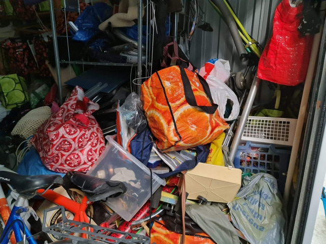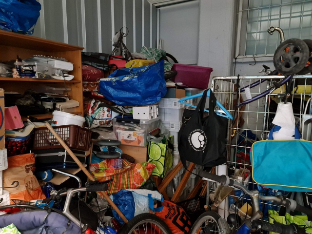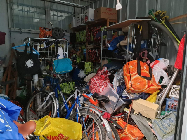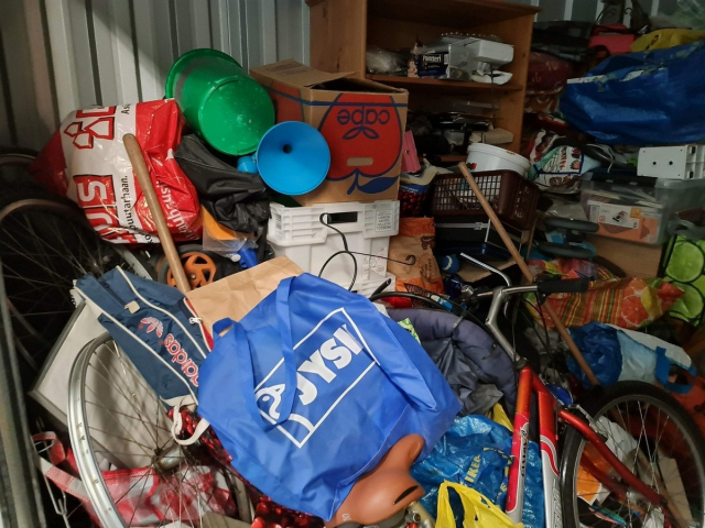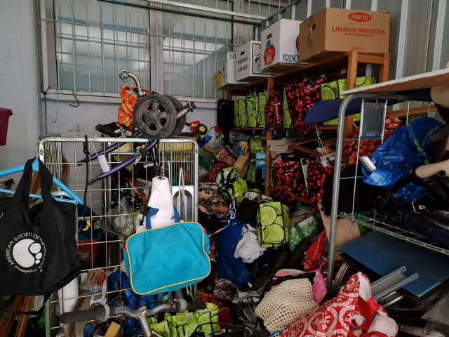 Myydään huutokaupalla kuvassa näkyvän varaston sisältö, vuokranantajan / haltijan lukuun.