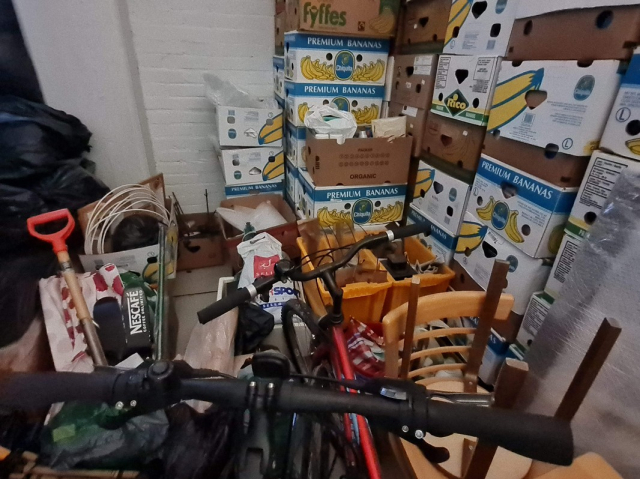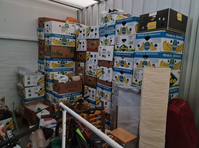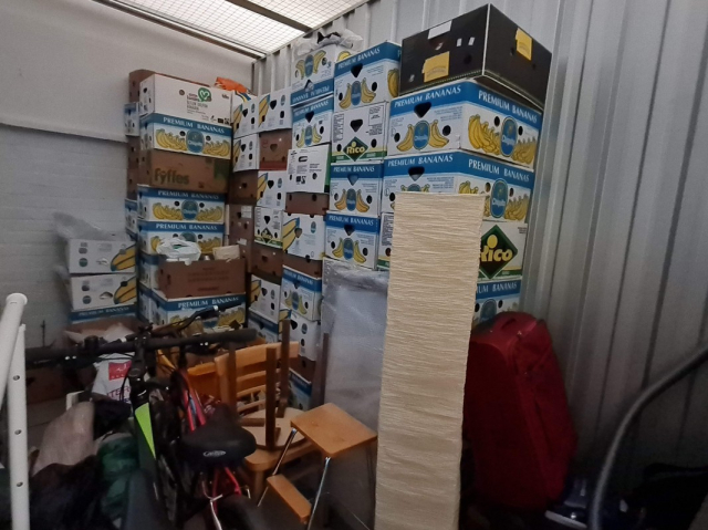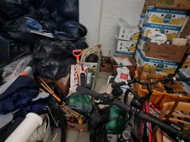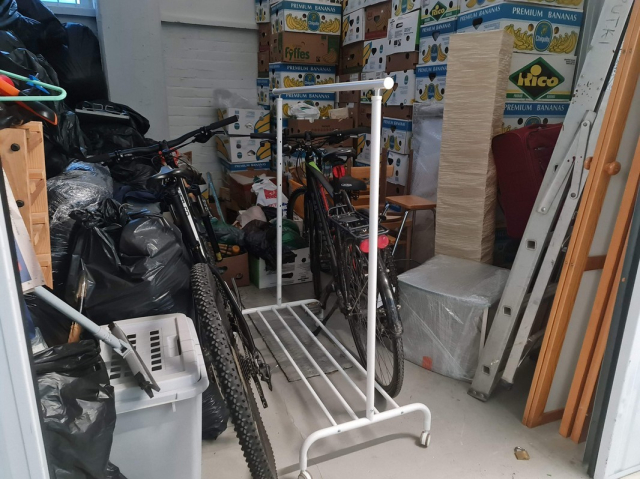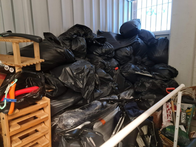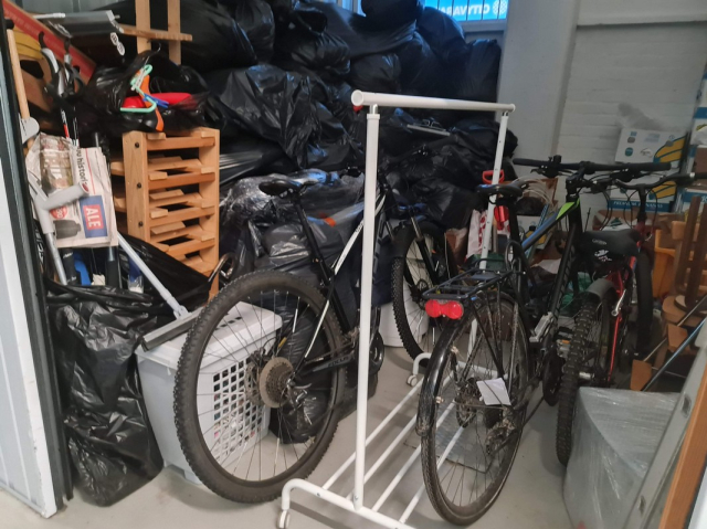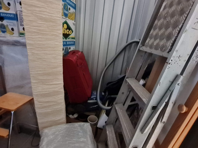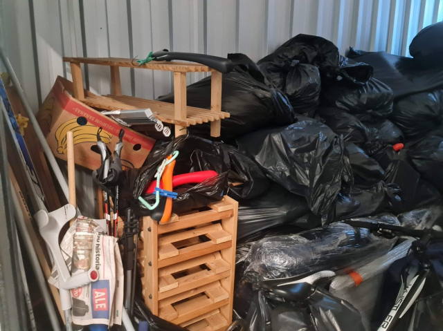 Myydään huutokaupalla kuvassa näkyvän varaston sisältö, vuokranantajan / haltijan lukuun.