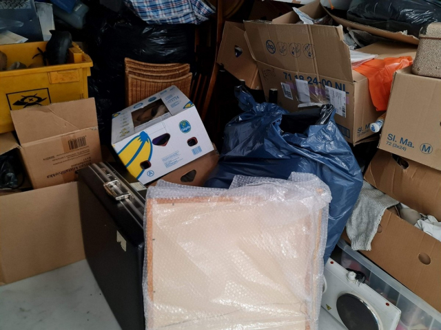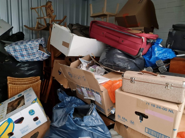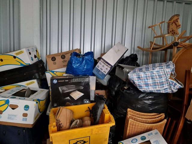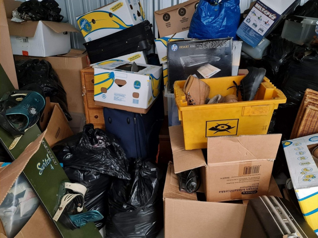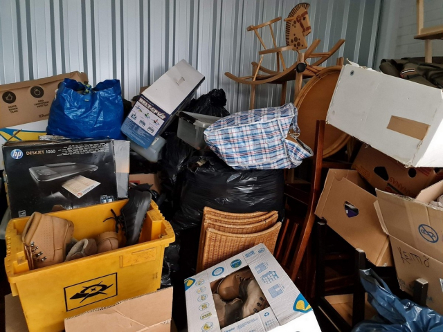 Myydään huutokaupalla kuvassa näkyvän varaston sisältö, vuokranantajan / haltijan lukuun.
