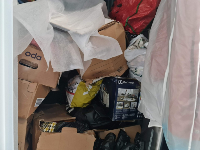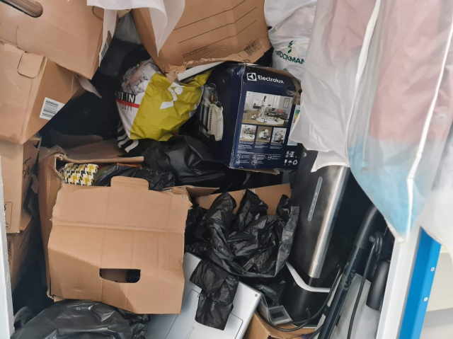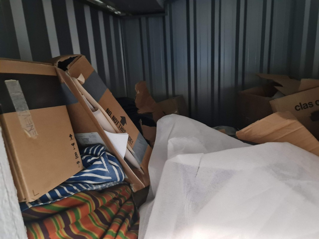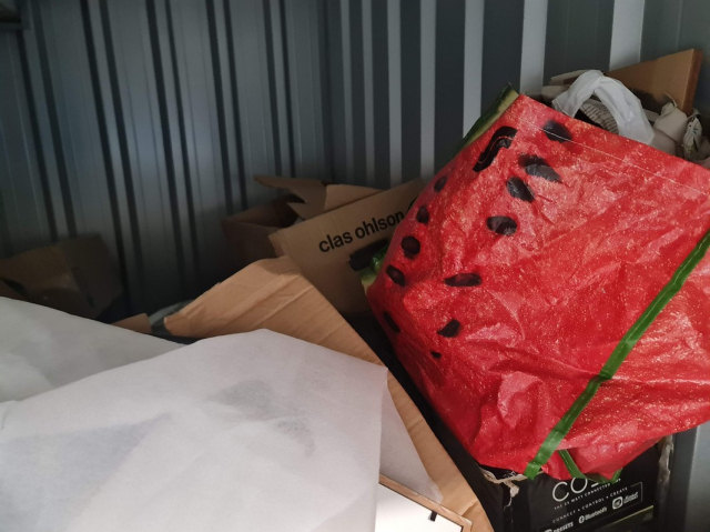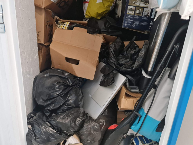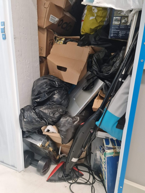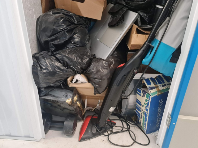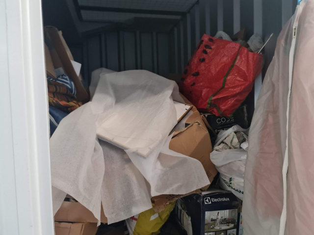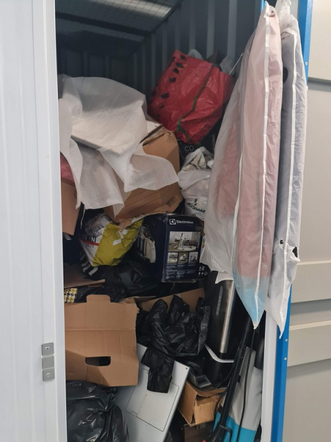 Myydään huutokaupalla kuvassa näkyvän varaston sisältö, vuokranantajan / haltijan lukuun.