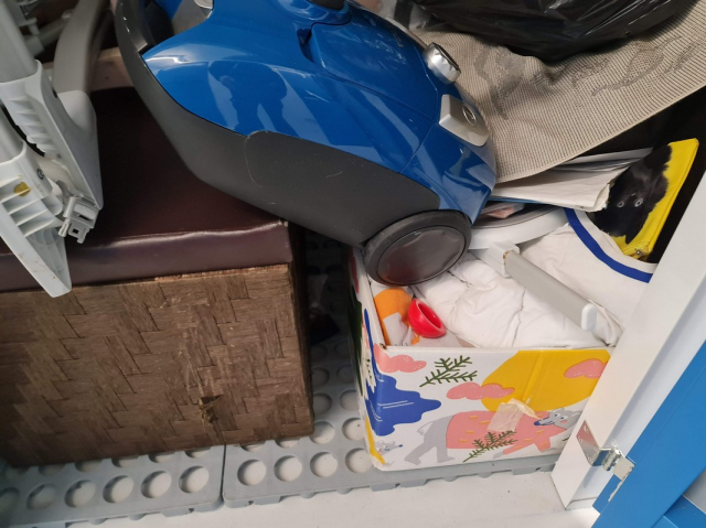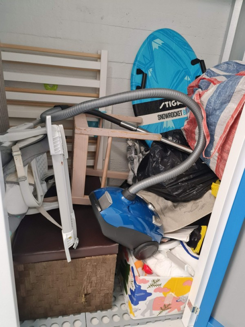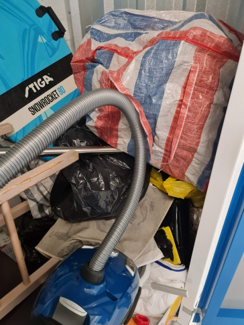 Myydään huutokaupalla kuvassa näkyvän varaston sisältö, vuokranantajan / haltijan lukuun.
