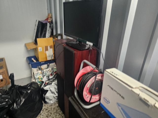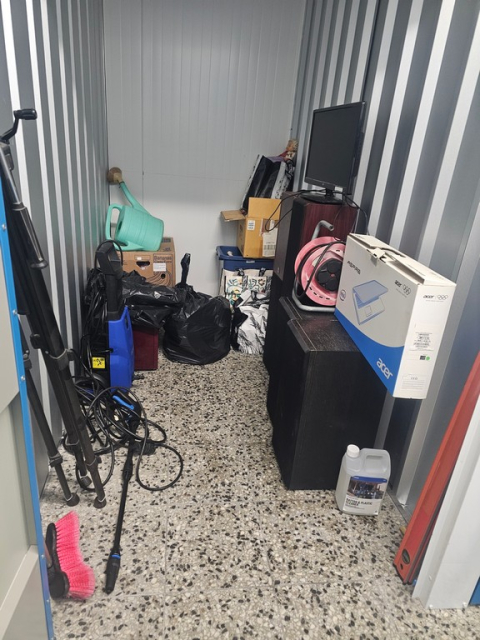 Myydään huutokaupalla kuvassa näkyvän varaston sisältö, vuokranantajan / haltijan lukuun.