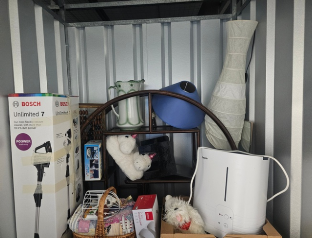 Myydään huutokaupalla kuvassa näkyvän varaston sisältö, vuokranantajan / haltijan lukuun.