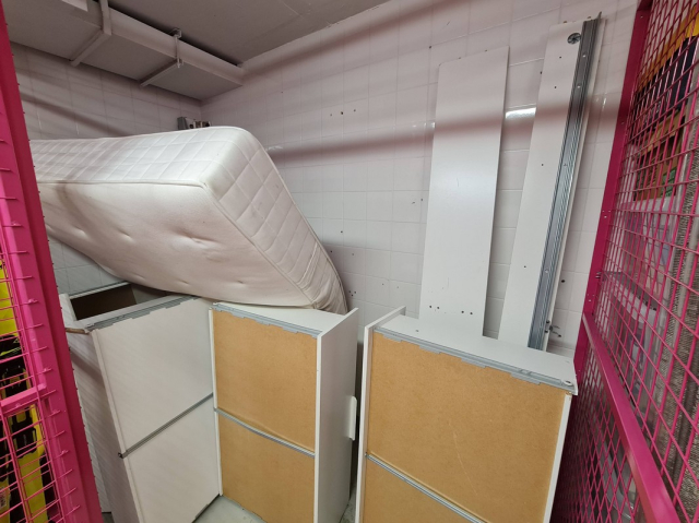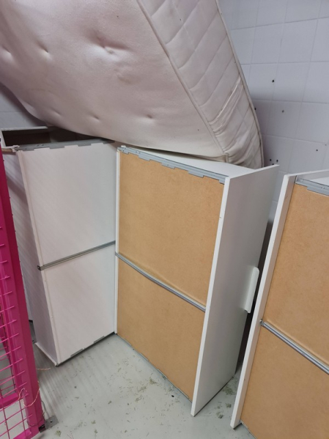 Myydään huutokaupalla kuvassa näkyvän varaston sisältö, vuokranantajan / haltijan lukuun.