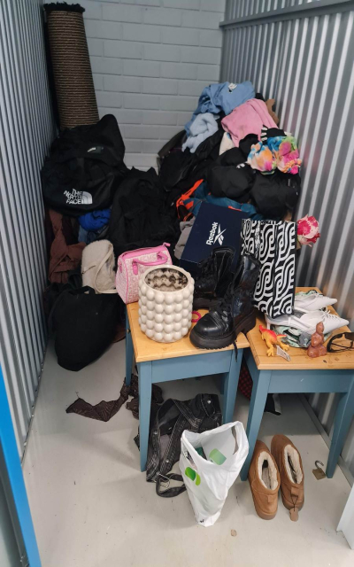 Myydään huutokaupalla kuvassa näkyvän varaston sisältö, vuokranantajan / haltijan lukuun.