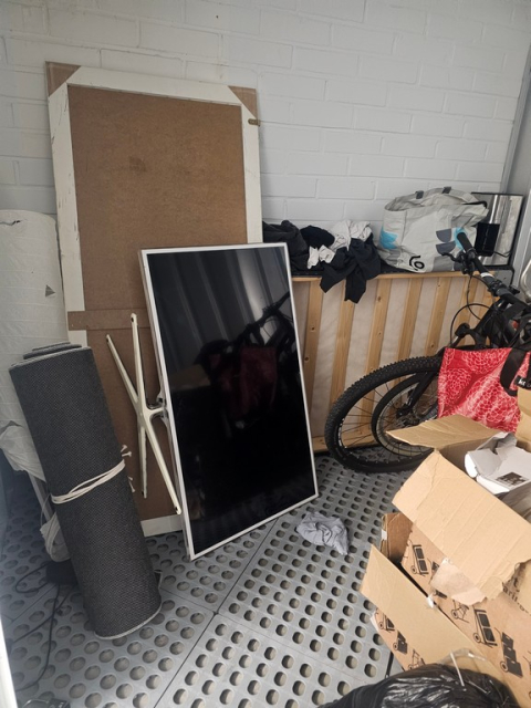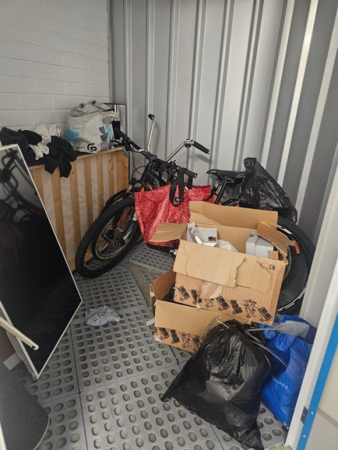 Myydään huutokaupalla kuvassa näkyvän varaston sisältö, vuokranantajan / haltijan lukuun.