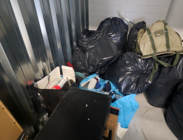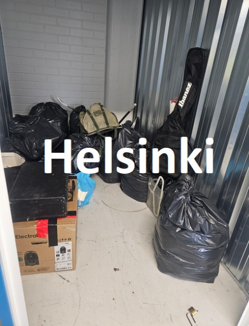 Myydään huutokaupalla kuvassa näkyvän varaston sisältö, vuokranantajan / haltijan lukuun.