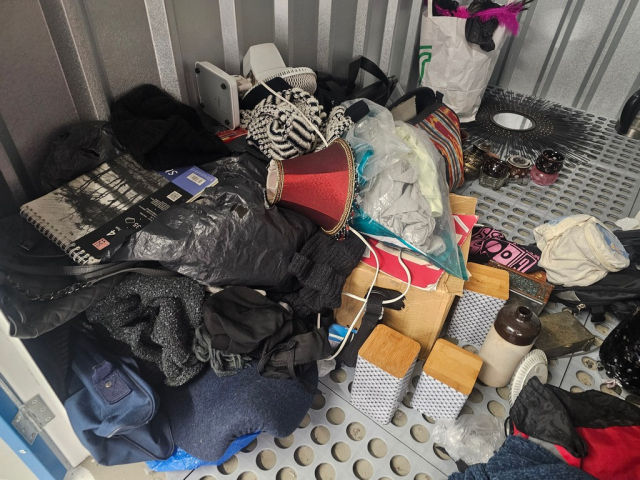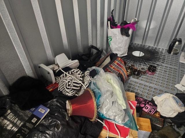 Myydään huutokaupalla kuvassa näkyvän varaston sisältö, vuokranantajan / haltijan lukuun.
