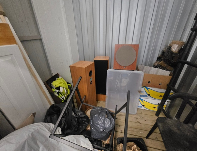 Myydään huutokaupalla kuvassa näkyvän varaston sisältö, vuokranantajan / haltijan lukuun.