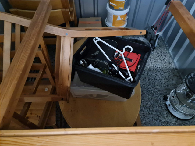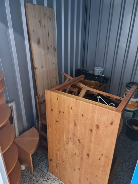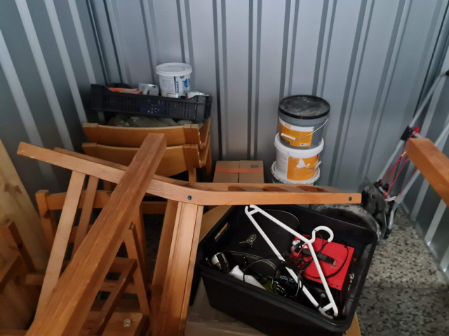 Myydään huutokaupalla kuvassa näkyvän varaston sisältö, vuokranantajan / haltijan lukuun.