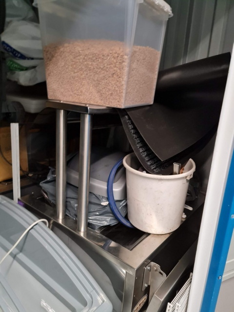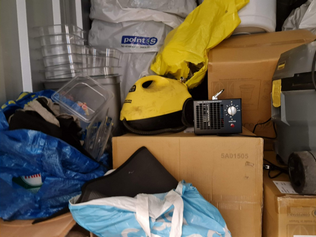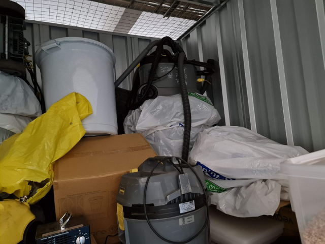 Myydään huutokaupalla kuvassa näkyvän varaston sisältö, vuokranantajan / haltijan lukuun.