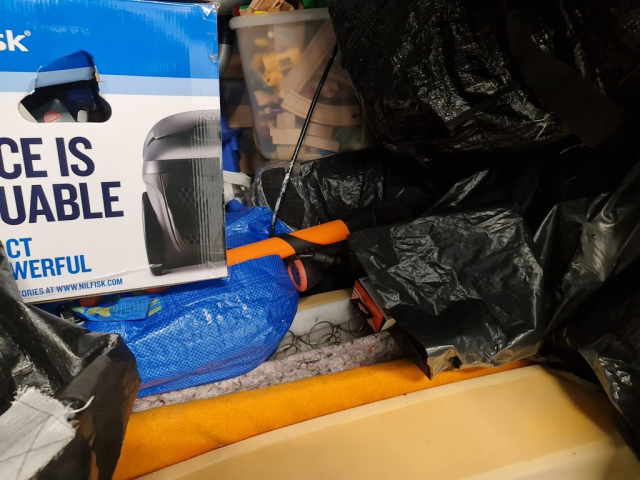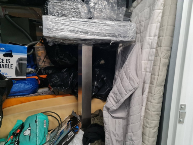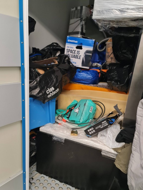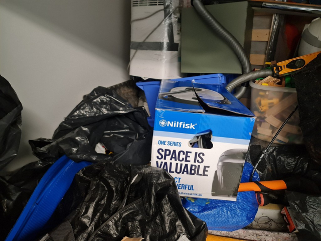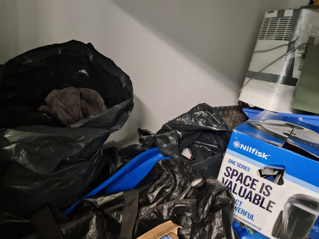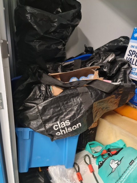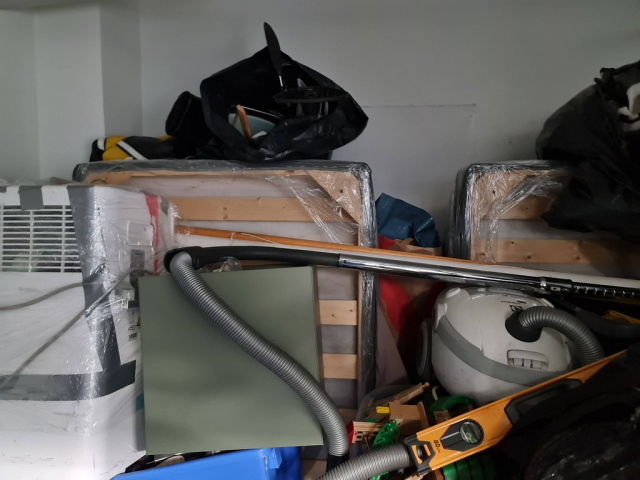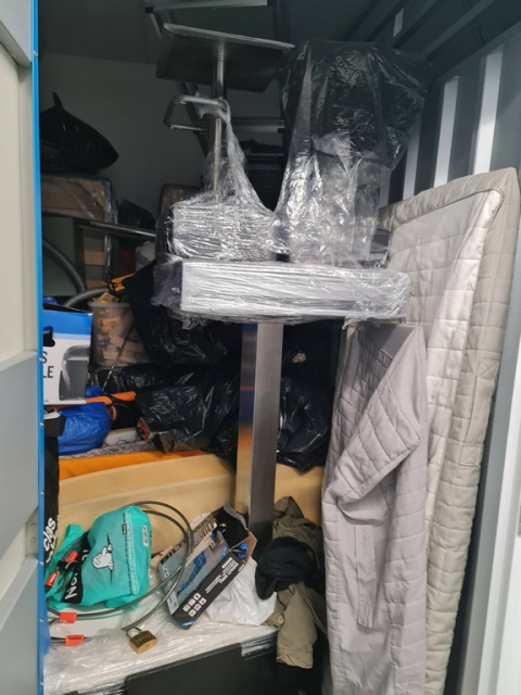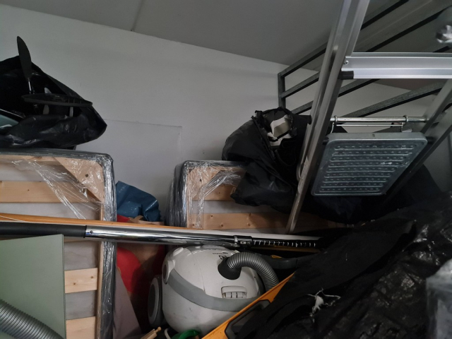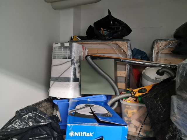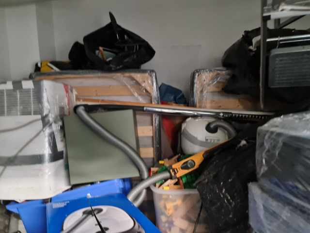 Myydään huutokaupalla kuvassa näkyvän varaston sisältö, vuokranantajan / haltijan lukuun.