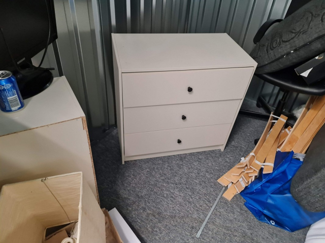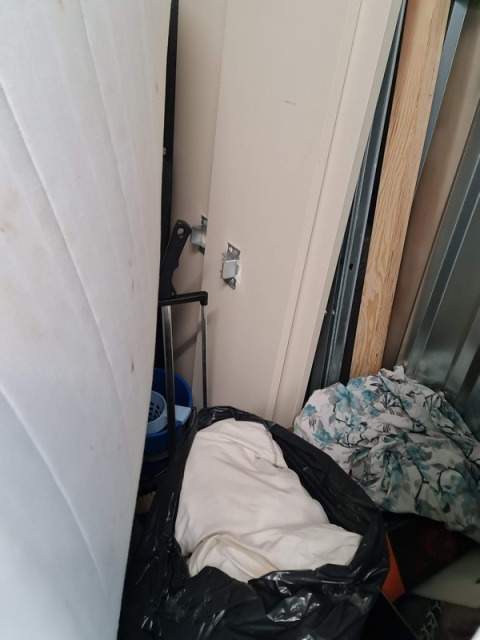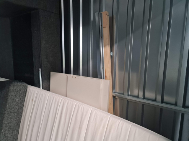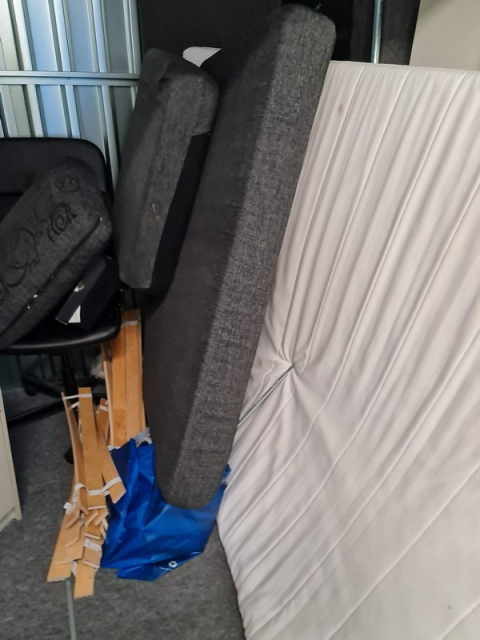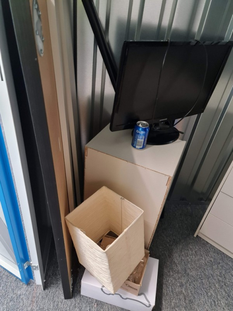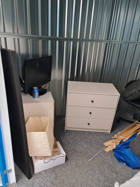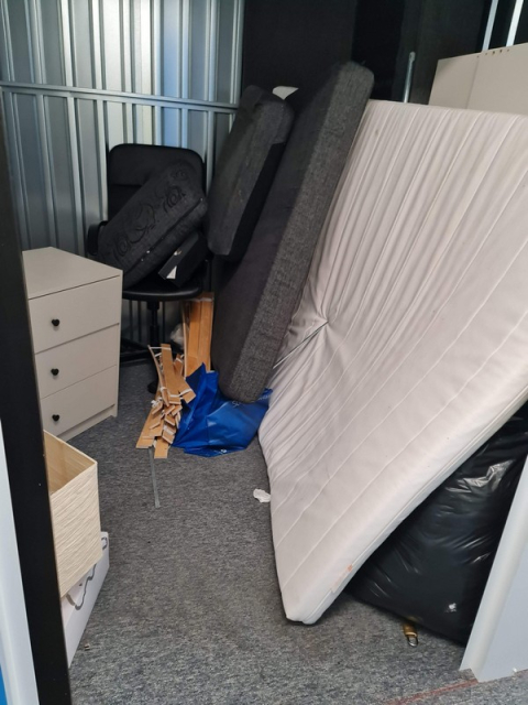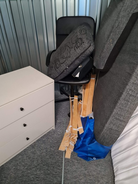 Myydään huutokaupalla kuvassa näkyvän varaston sisältö, vuokranantajan / haltijan lukuun.