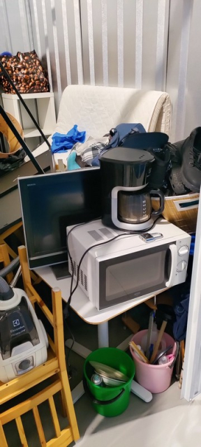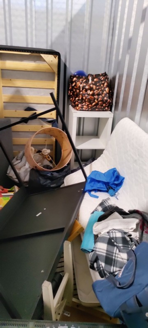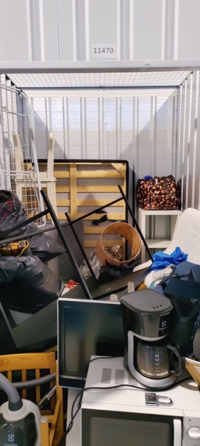 Myydään huutokaupalla kuvassa näkyvän varaston sisältö, vuokranantajan / haltijan lukuun.