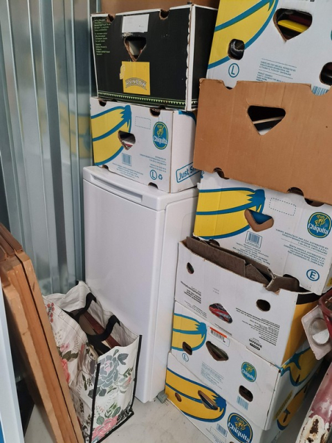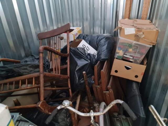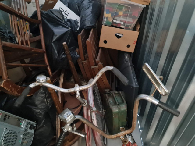 Myydään huutokaupalla kuvassa näkyvän varaston sisältö, vuokranantajan / haltijan lukuun.