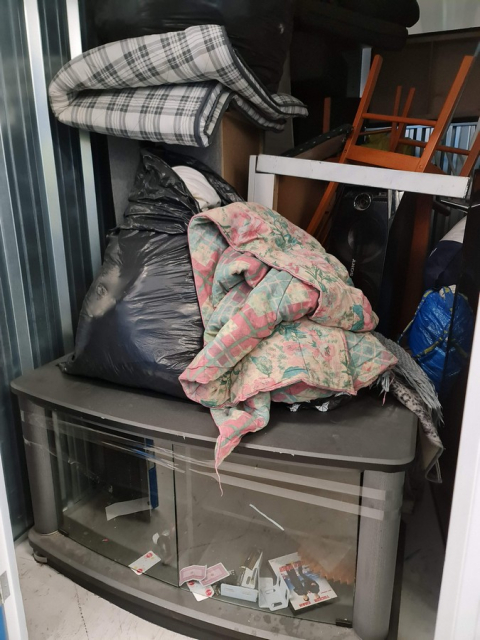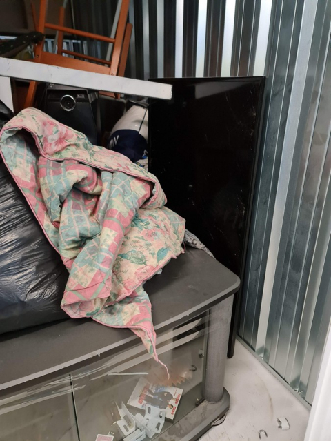 Myydään huutokaupalla kuvassa näkyvän varaston sisältö, vuokranantajan / haltijan lukuun.