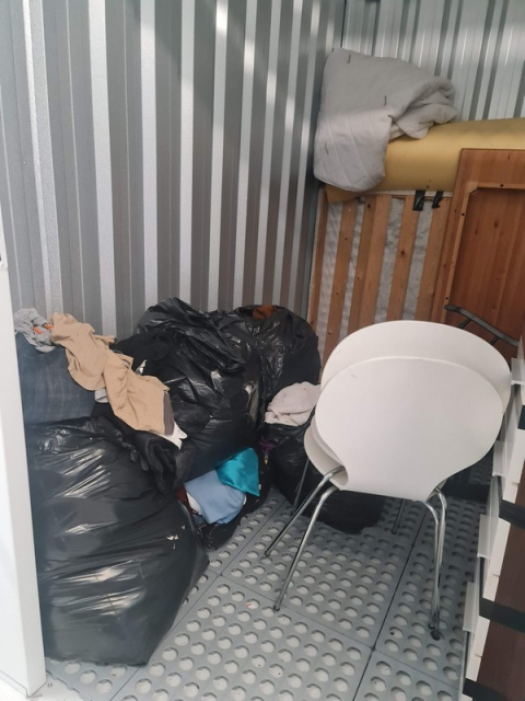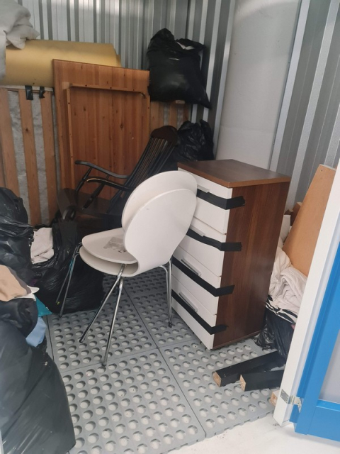Myydään huutokaupalla kuvassa näkyvän varaston sisältö, vuokranantajan / haltijan lukuun.