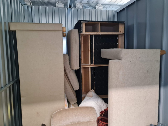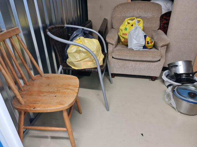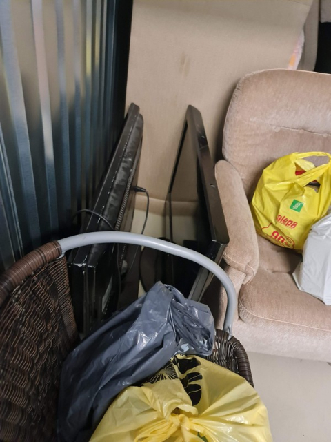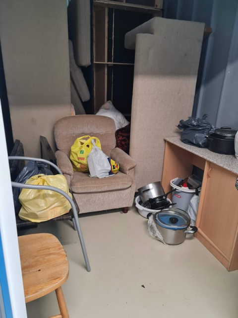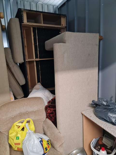 Myydään huutokaupalla kuvassa näkyvän varaston sisältö, vuokranantajan / haltijan lukuun.