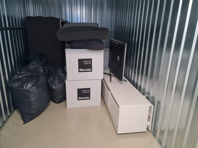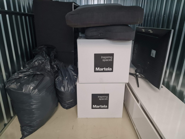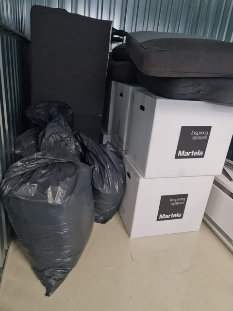Myydään huutokaupalla kuvassa näkyvän varaston sisältö, vuokranantajan / haltijan lukuun.
