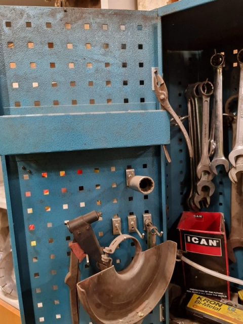 Reikälevykaappi hyllykkö pyörillä ja työkalut