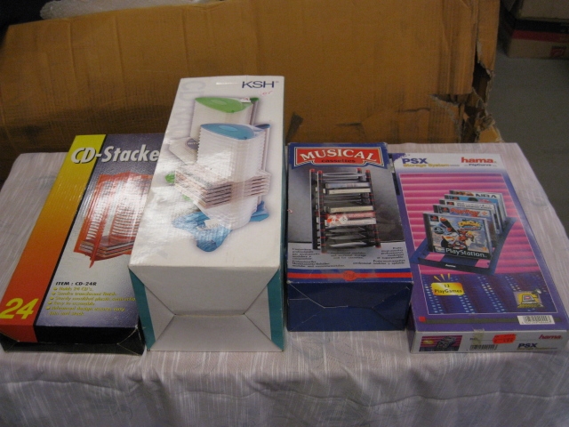 Uusia erilaisia CD telineitä, 19 kappaleen erä.