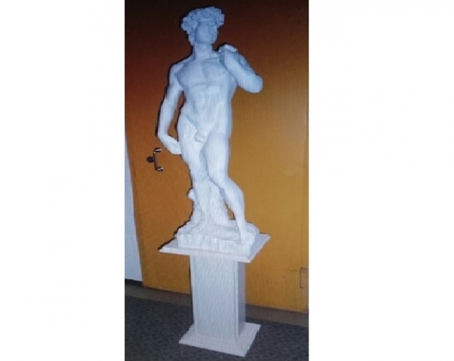 Hartsiin tehty kopio Michaelangelo:n David patsaasta korkeus n. 117 cm, jalustan korkeus 80 cm